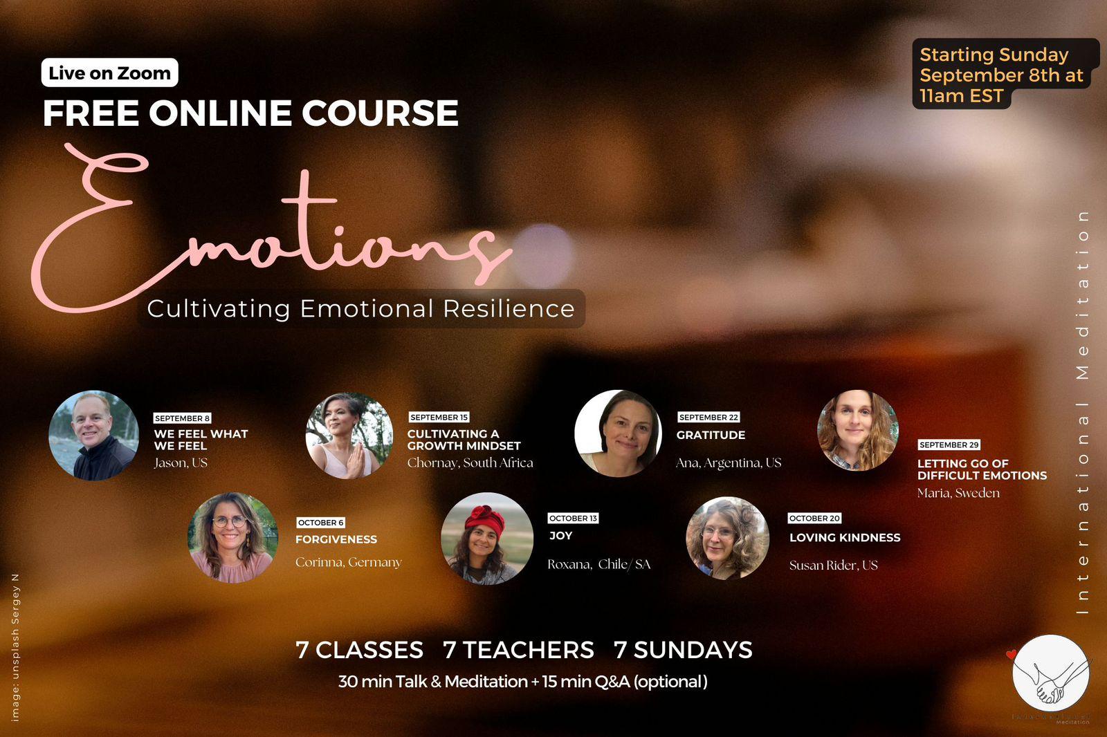 In these challenging times, we all need a place to pause, breathe, and reconnect. Join the International Meditation, a global community of mindfulness practitioners and certified meditation teachers for free weekly live sessions on Zoom—a space to restore balance, nourish your heart, and support one another. From Africa to Alaska, we come together to heal, grow, and bring mindfulness into our lives.